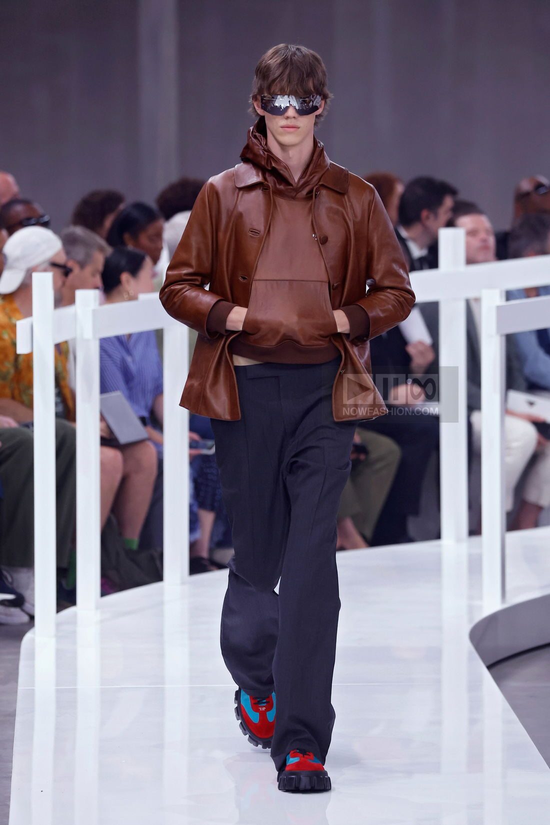 “The world has become conservative,” Miuccia Prada declared backstage, articulating a concern that extends far beyond fashion. The collection deliberately embraces irregularity, asymmetry, and unexpected combinations—everything that algorithms would discourage.